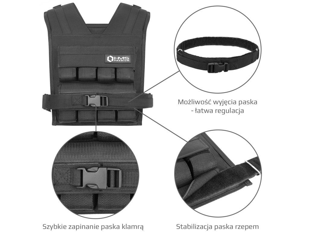 Zátěžová vesta HMS Premium KTO16 je ideálním nástrojem pro trénink s vlastní vahou. Vesta po nasazení a zapnutí přiléhá k tělu a tak dokáže rovnoměrně zvýšit zátěž při trénku většiny cviků od přítahů na hrazdě, přes kliky až po běh.